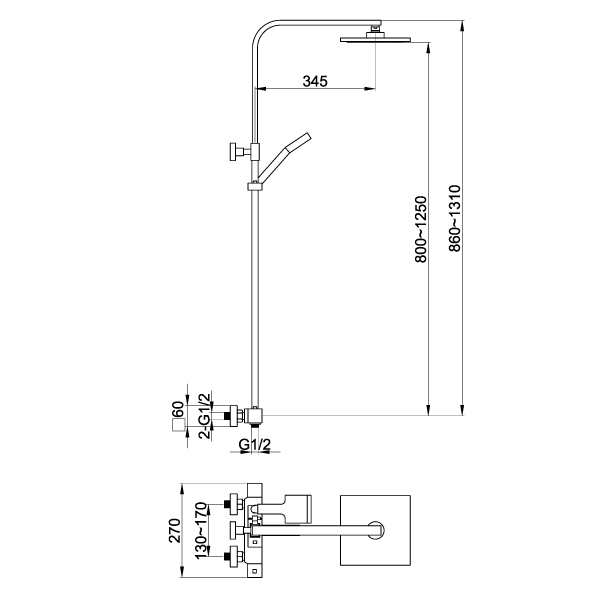 Name:Surface mounted constant temperature shower combination